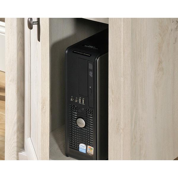 Give your home office or workspace a fresh new look with this computer desk from the Edge Water collection. It spacious desk top surface provides you with ample amount of room for all your must-have desk essentials laptop, your collection of notepads, a cup full of pens and even an accent lamp. It features a flip-down molding that reveals a slide-out keyboard/mouse shelf that includes metal runners and safety stops. This handsome desk also features two large storage drawers that open and close on smooth metal runners for easy access storage of miscellaneous office items. The lower drawer holds letter or European size hanging files so you can keep all your important documents organized. Behind the door is a hidden storage area that includes an adjustable shelf and accommodates a vertical CPU tower. Finished in Chalked Chestnut and detailed with solid wood accents, this computer desk will add charm and beauty to your office.